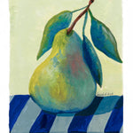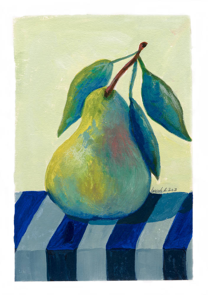 Still Life - Pear on Parade: A Dance of Stripes and Sweetness was painted on paper using watercolour and gouache.